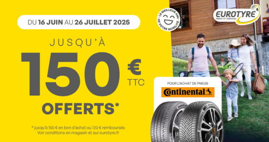 Promotion pour l’achat de pneus Continental 2025 Du 6 octobre au 15 novembre 2025, profitez de l’offre Continental jusqu’à 150€ offerts* […]