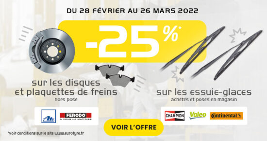 Il y a toujours une promo pneu intéressante avec Eurotyre ! Pneus pas cher pour un budget serré, cadeau exclusif, remboursement… notre réseau de garagistes tisse des partenariats avec les plus grandes marques.